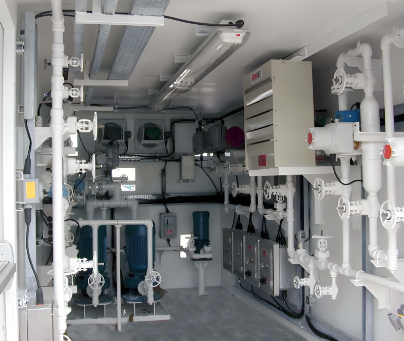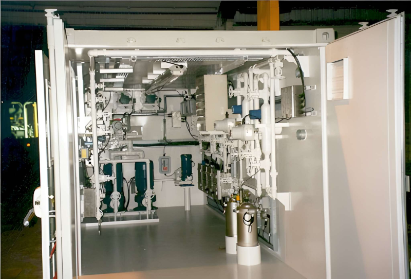 The leak detection unit in closed housing is accommodated with appropriate light, ventilation, gas content alarm and file alarm detector.